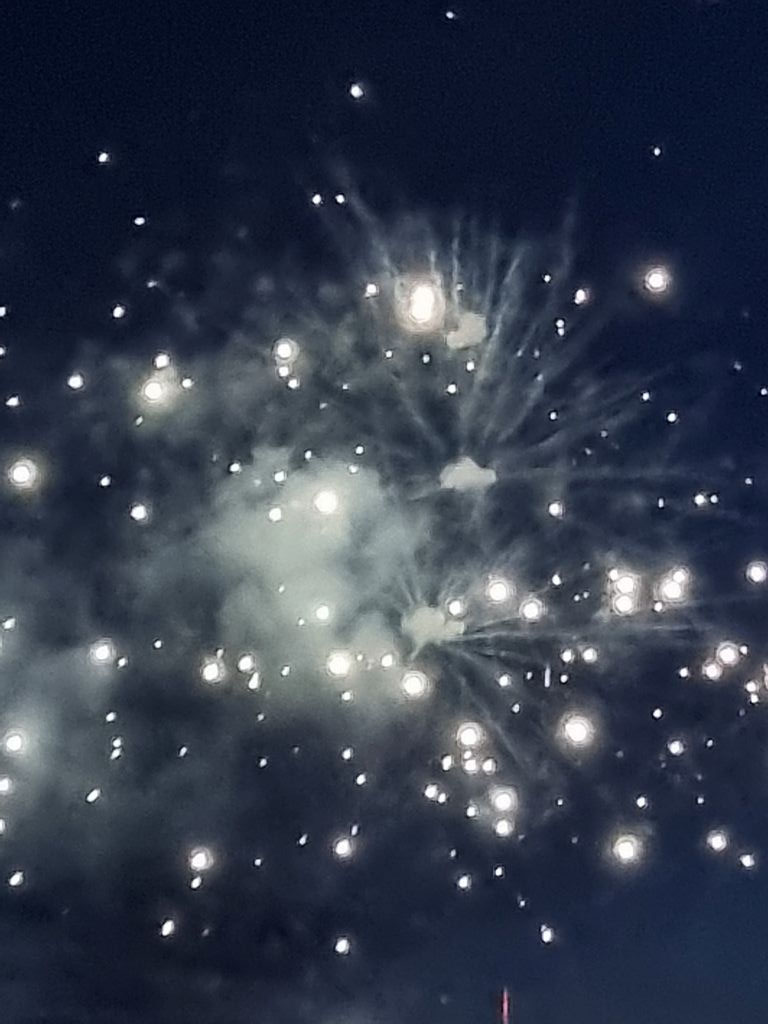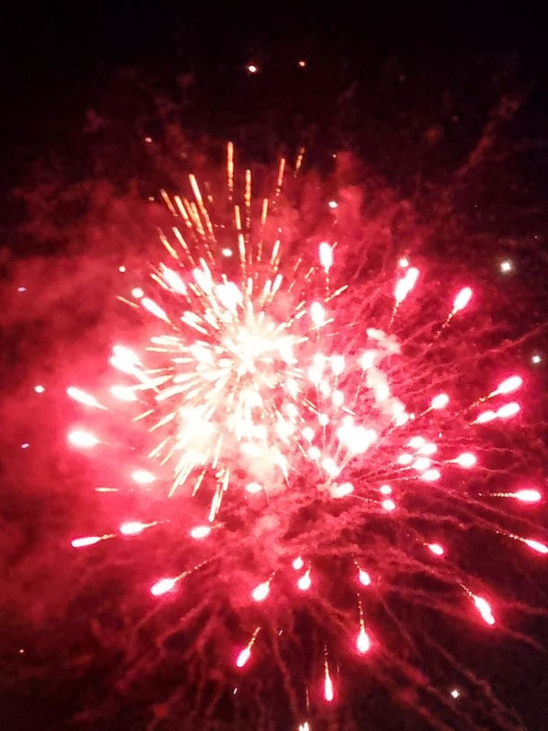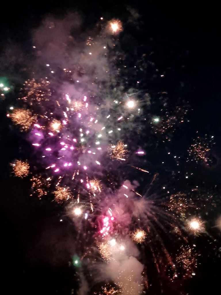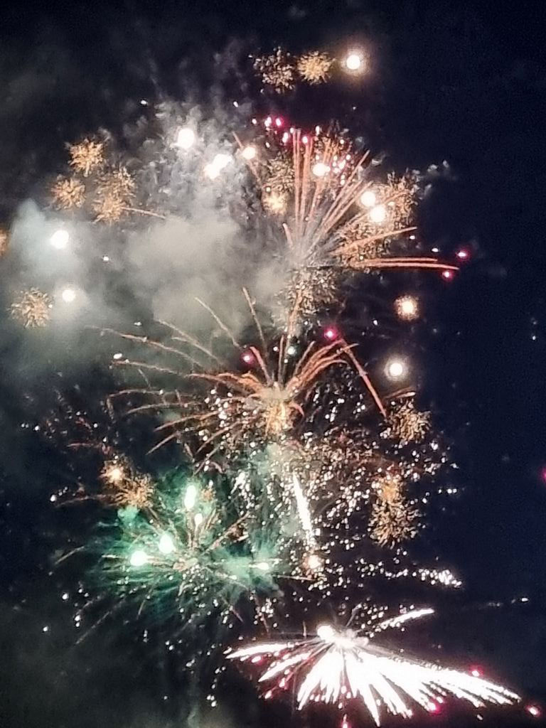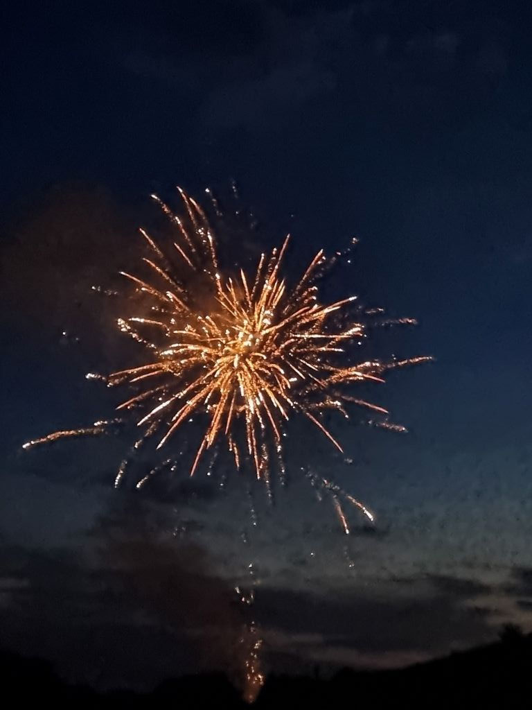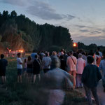 Vanaf het stadhuis in Cumières in lampionnenoptocht naar de plek van het vuurwerk.