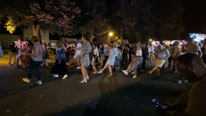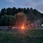 In de donkerte terug naar het dorpsplein, om het verdere feest te vieren.