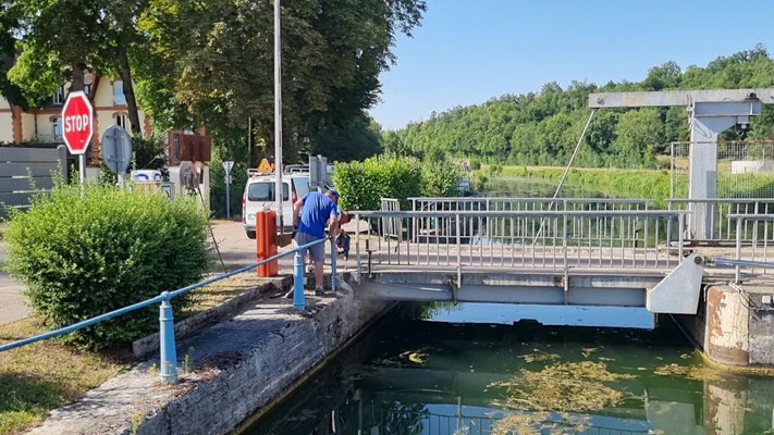Bij het uitvaren is er meestal een brug bij de sluis- ook hier.
