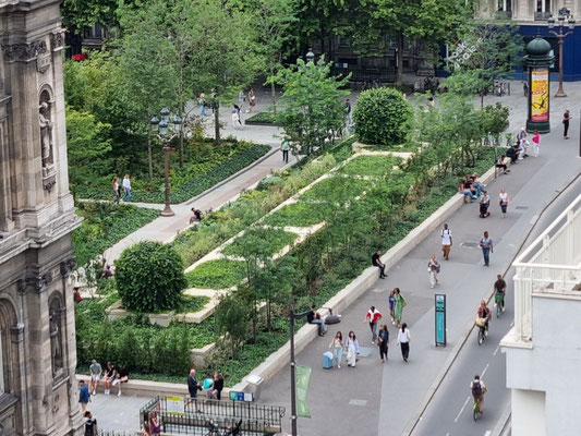 Er zijn veel fietspaden in Parijs en soms fiets je over de busbaan.
