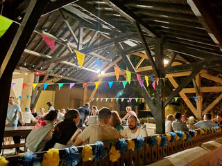 Er is een bar en een plek waar de dorpsgenoten elkaar ontmoeten.