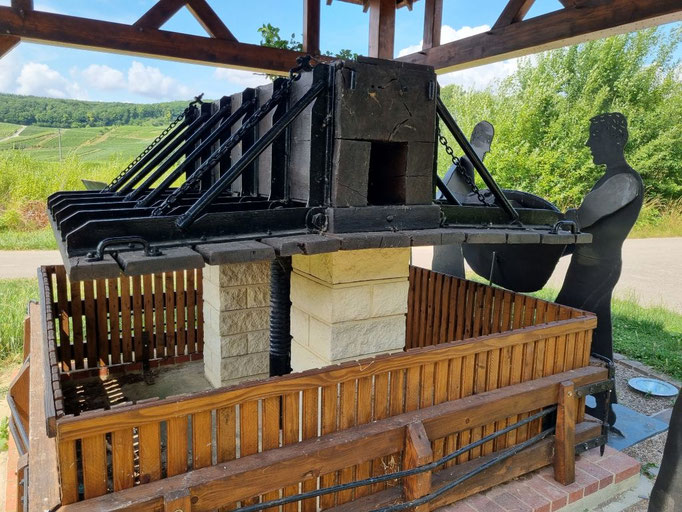 Zo is er nog de flessen van een kurk voorzien- De flessen draaien tijdens het rijpen en de grote druivenpers.
