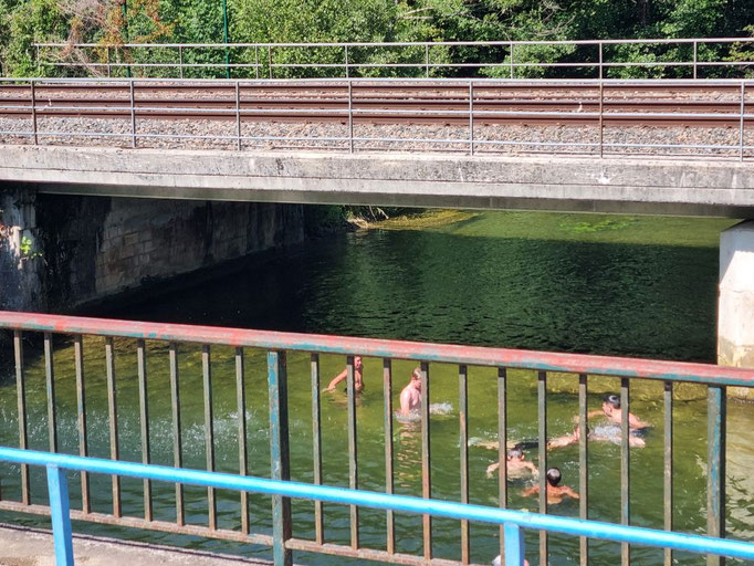 Vanaf de Pont Canal werd er in de Marne gezwommen.