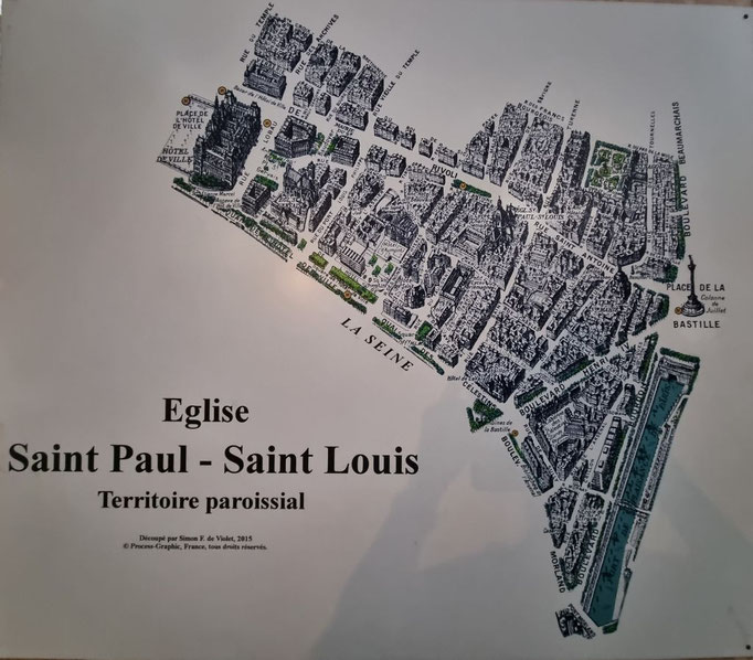 Na het winkelen Hendrik opgezocht. Hij zat op een terrasje in de buurt van de kerk Saint-Paul-Saint-Louis.