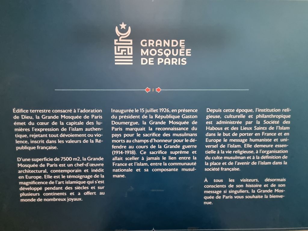 De Moskee is gebouwd ter erkenning en herdenking van de vele moslimsoldaten die gestorven zijn voor Frankrijk in de 1e Wereldoorlog.